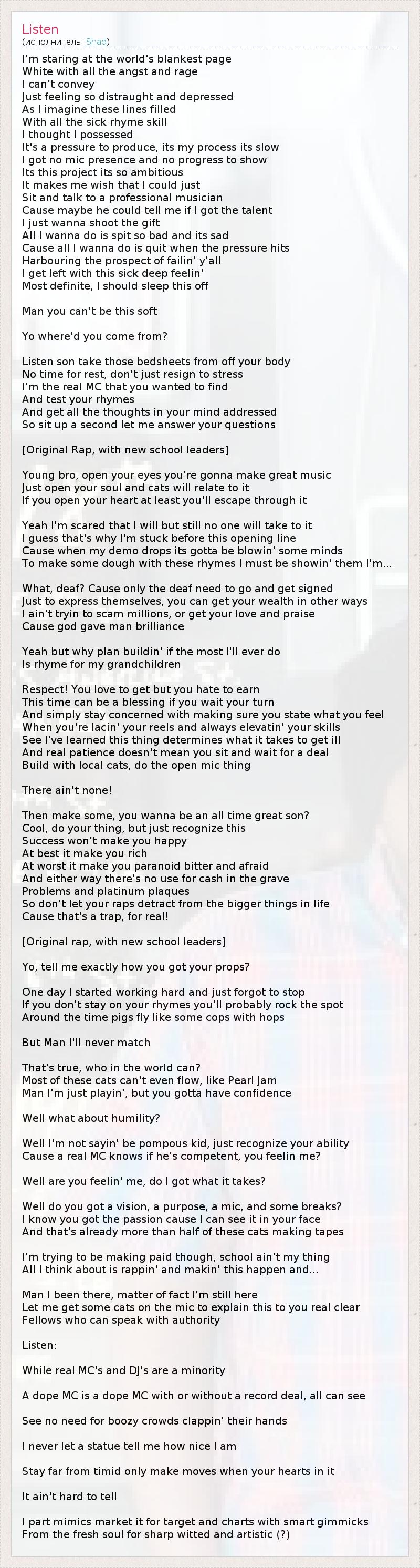 Это интересно:Shadrach Kabango родился 18 июля 1982 в Кении, позже переехал в Лондон. Учился в Лондонской Центральной Средней Школе. Имеет два высших образования. В 2005 выпустил свой первый альбом When This Is Over, записанный на деньги, выигранные в университетском конкурсе талантов. Имеет два высших образования. В 2007 был подписан на Black Box Recordings и выпустил свой второй альбом The Old Prince, который получил номинацию на премию... продолжение