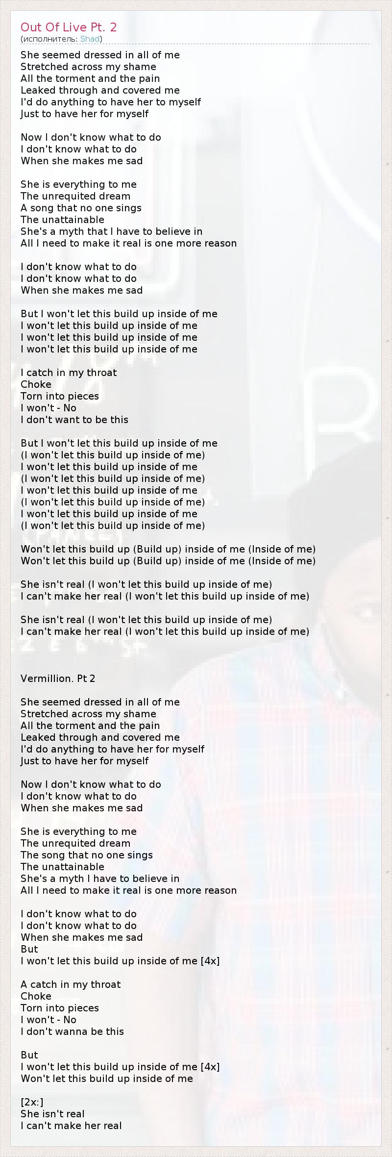 I won't let this build up inside of me [4x]