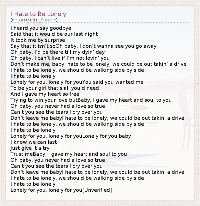 А как ты думаешь, о чем песня "I Hate to Be Lonely" ?