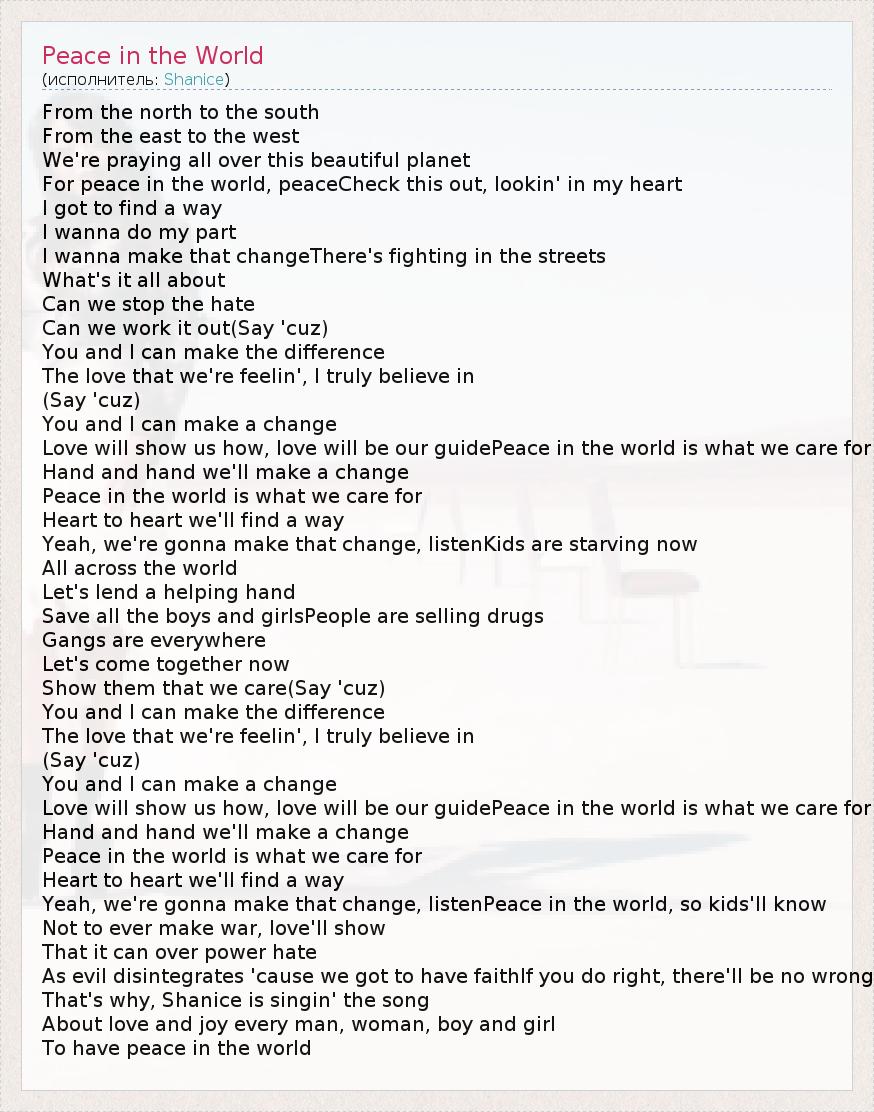 А как ты думаешь, о чем песня "Peace in the World" ?