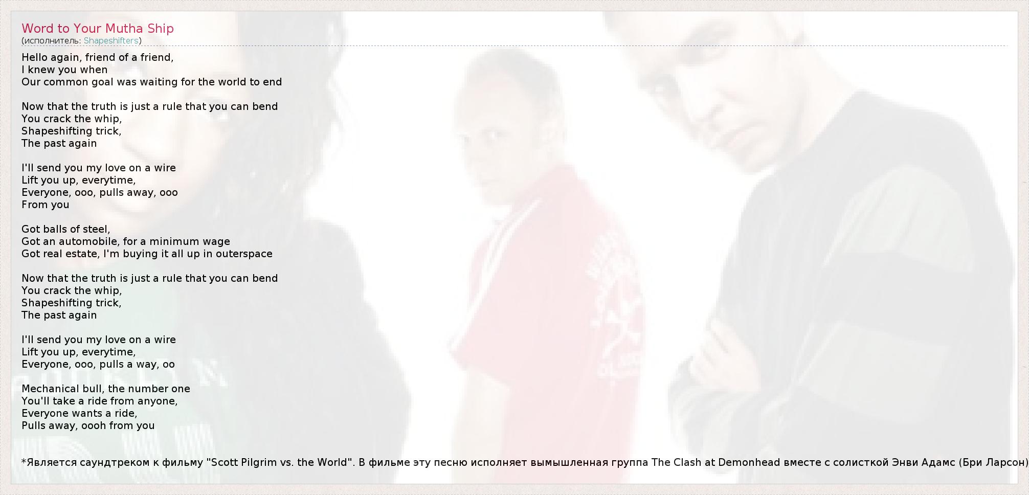 А как ты думаешь, о чем песня "Word to Your Mutha Ship" ?