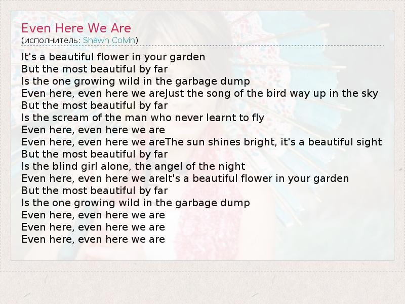А как ты думаешь, о чем песня "Even Here We Are" ?