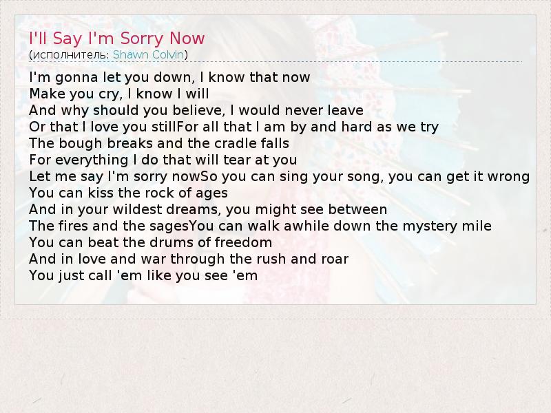 А как ты думаешь, о чем песня "I'll Say I'm Sorry Now" ?