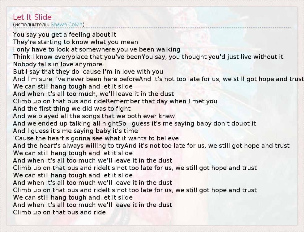 А как ты думаешь, о чем песня "Let It Slide" ?