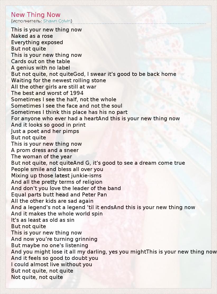 А как ты думаешь, о чем песня "New Thing Now" ?