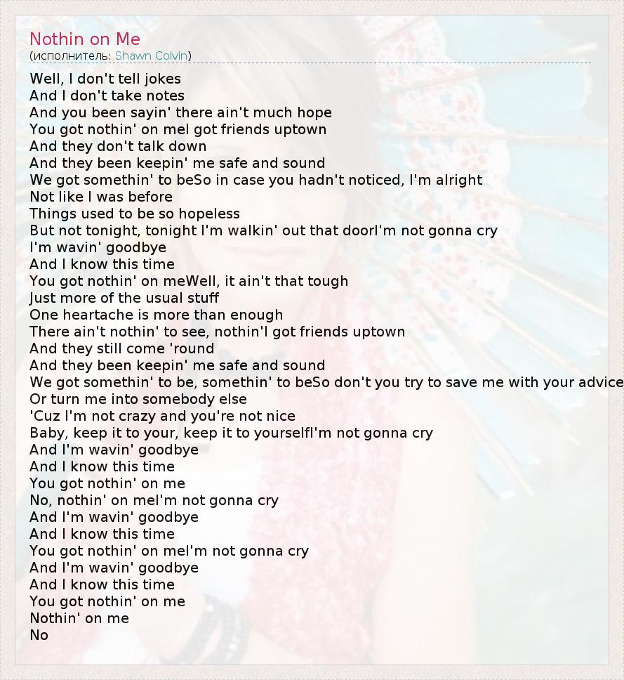 А как ты думаешь, о чем песня "Nothin on Me" ?