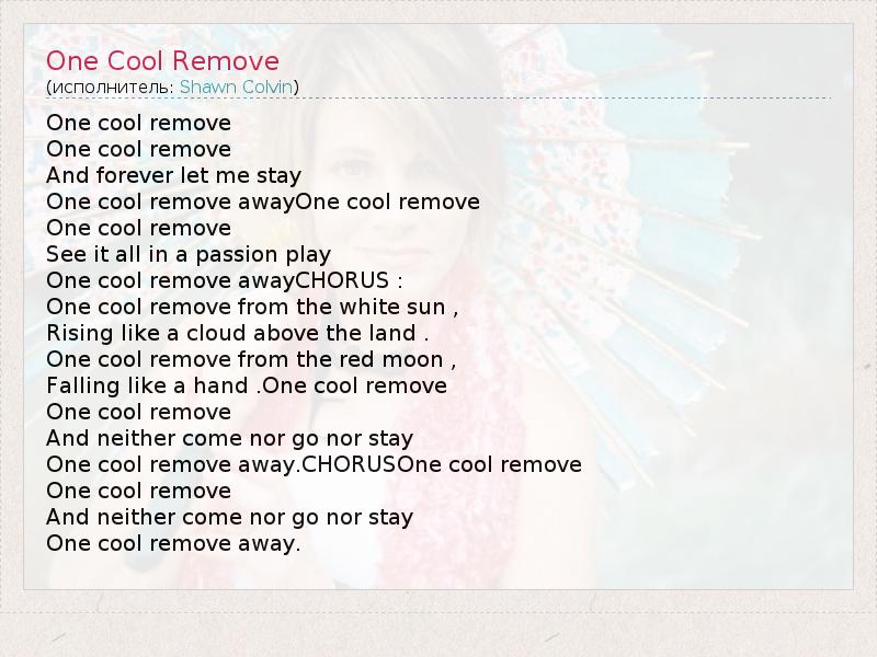 А как ты думаешь, о чем песня "One Cool Remove" ?