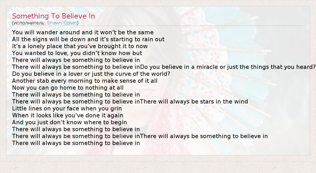 There will always be something to believe inThere will always be something to believe in