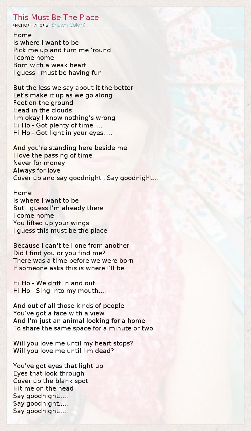 А как ты думаешь, о чем песня "This Must Be The Place" ?