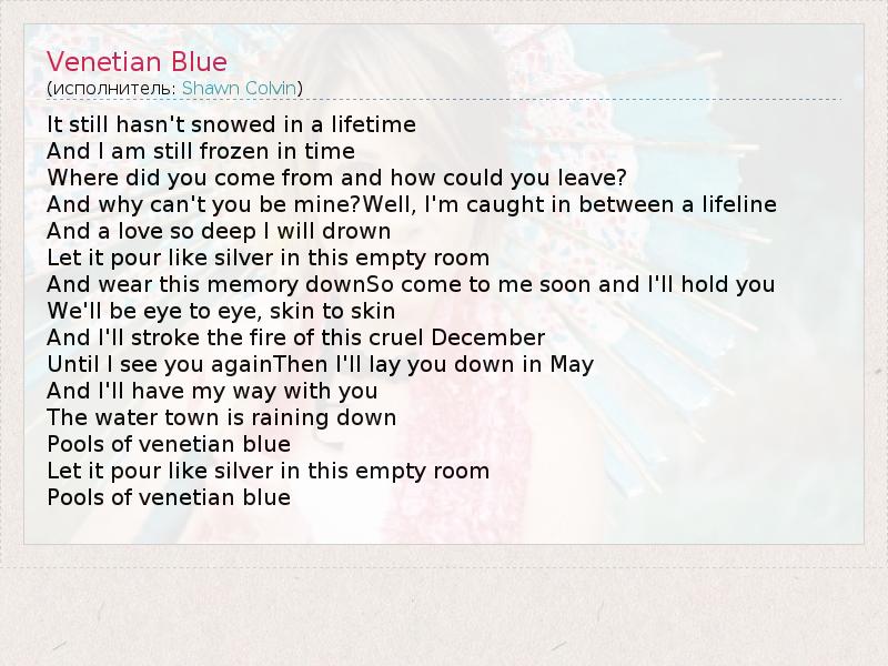 А как ты думаешь, о чем песня "Venetian Blue" ?