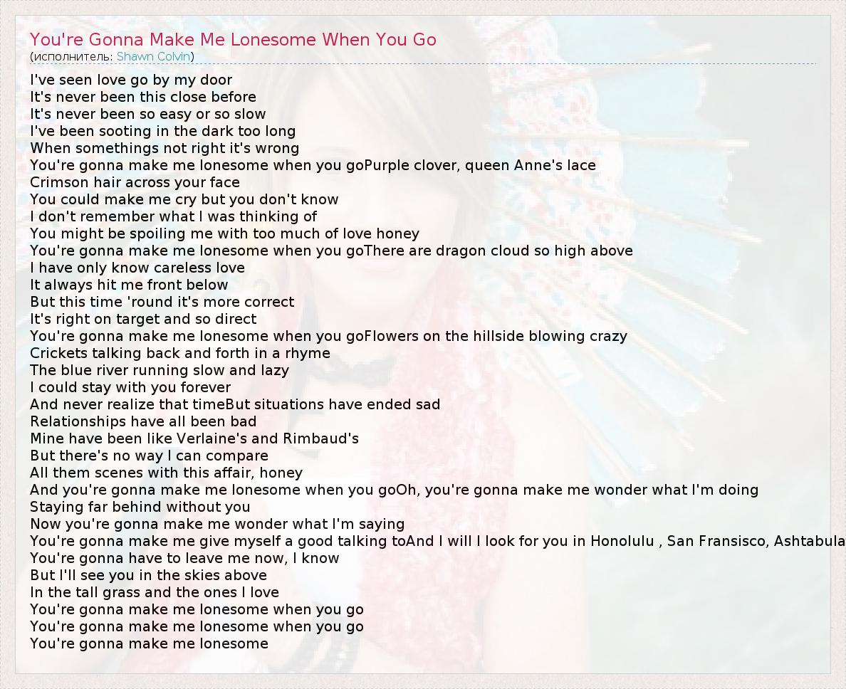 А как ты думаешь, о чем песня "You're Gonna Make Me Lonesome When You Go" ?