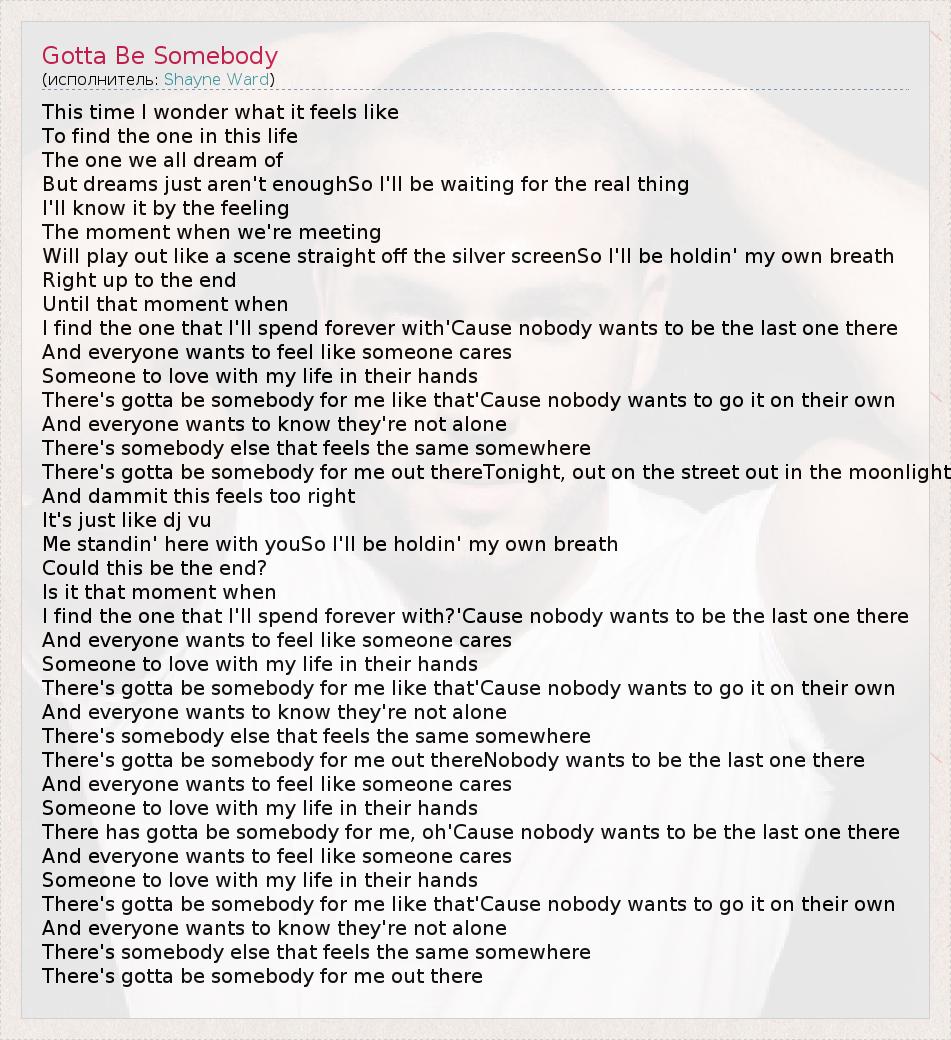 А как ты думаешь, о чем песня "Gotta Be Somebody" ?