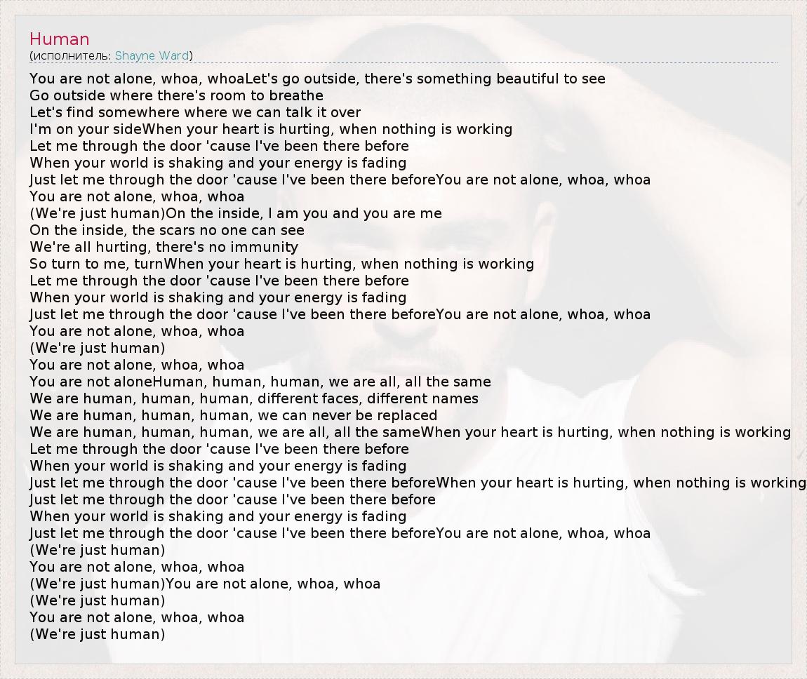 You are not aloneHuman, human, human, we are all, all the same