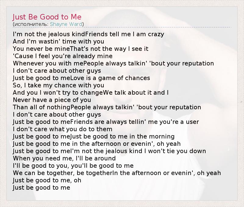 А как ты думаешь, о чем песня "Just Be Good to Me" ?
