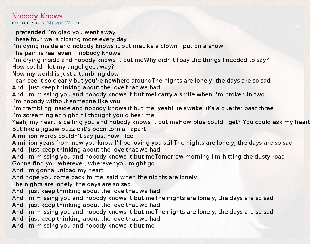 А как ты думаешь, о чем песня "Nobody Knows" ?