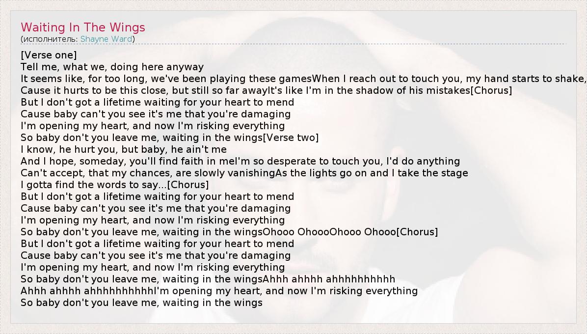 А как ты думаешь, о чем песня "Waiting In The Wings" ?