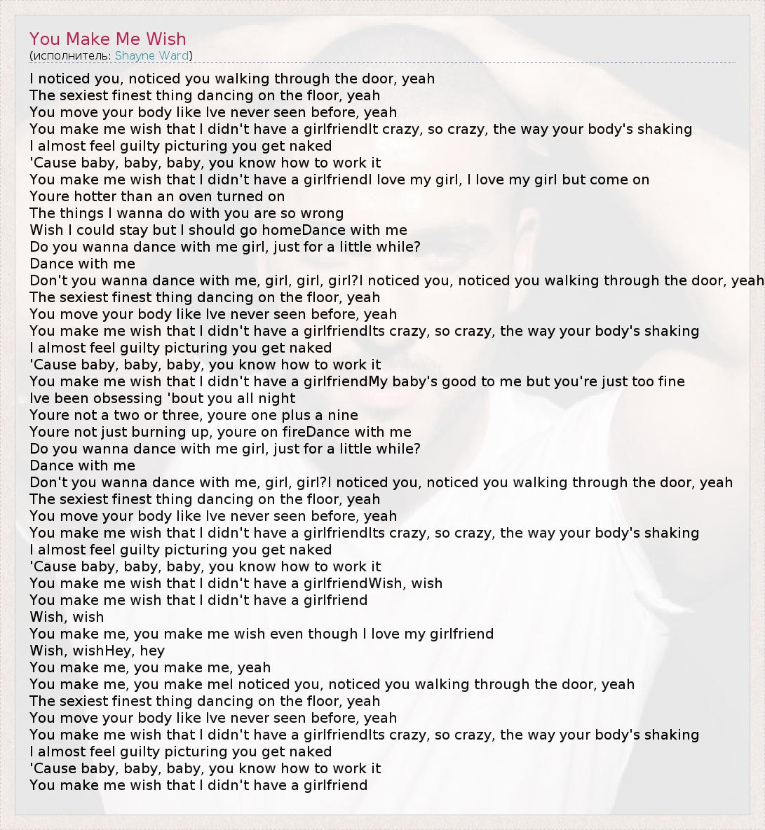 А как ты думаешь, о чем песня "You Make Me Wish" ?