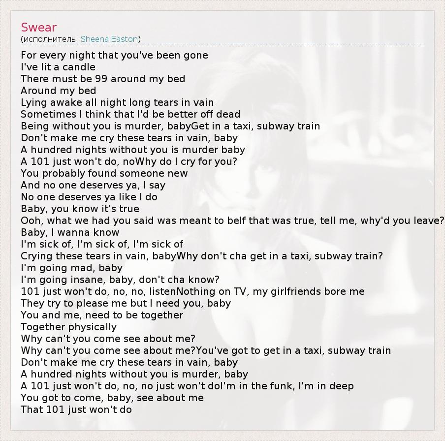 Crying these tears in vain, babyWhy don't cha get in a taxi, subway train?