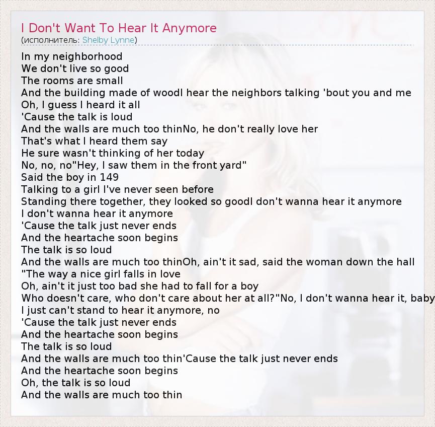 I Don't Want To Hear It Anymore