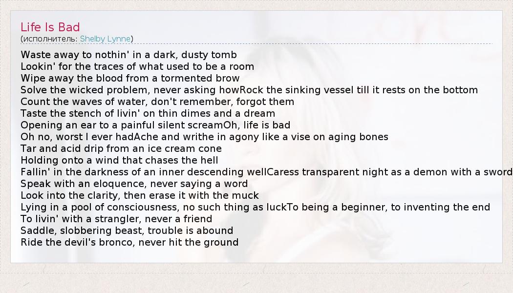 А как ты думаешь, о чем песня "Life Is Bad" ?