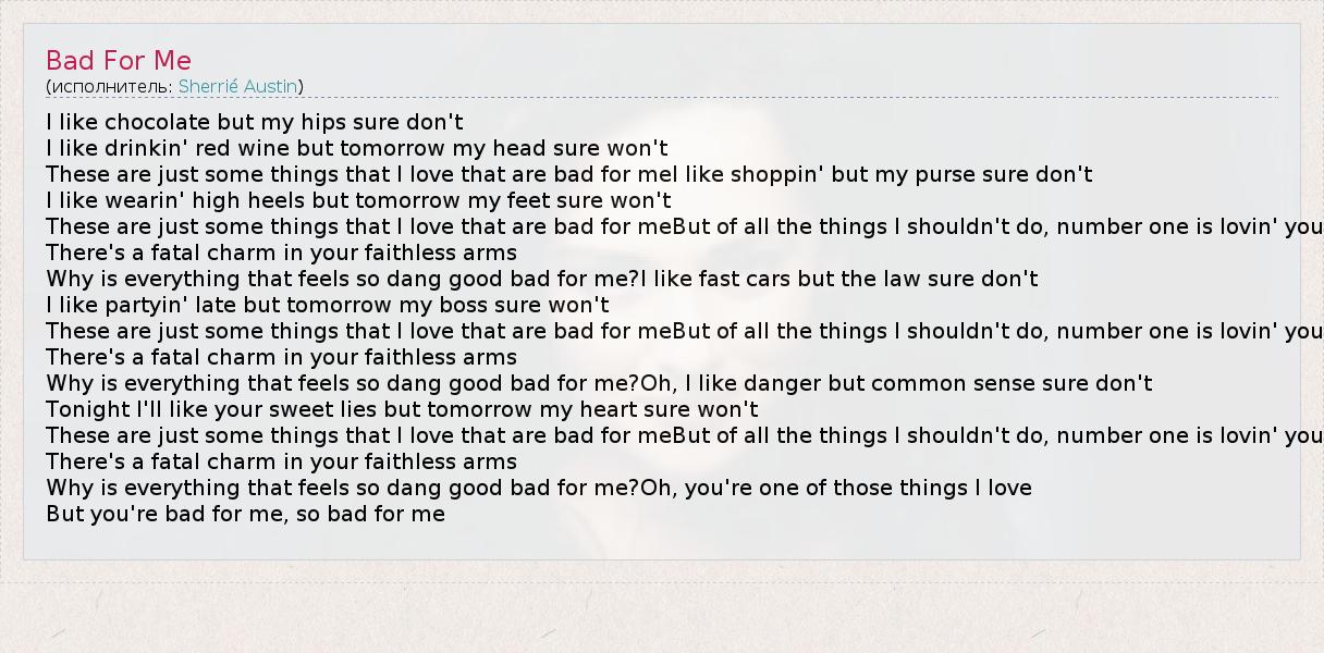 А как ты думаешь, о чем песня "Bad For Me" ?