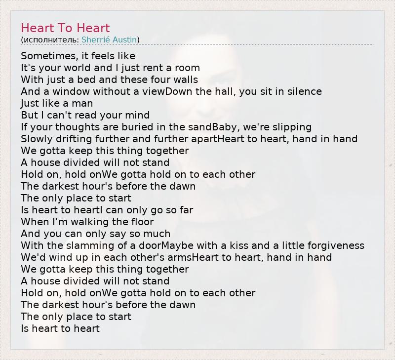 А как ты думаешь, о чем песня "Heart To Heart" ?