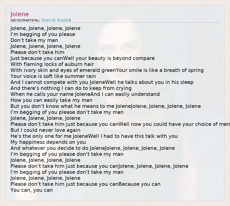 But you don't know what he means to me JoleneJolene, Jolene, Jolene, Jolene