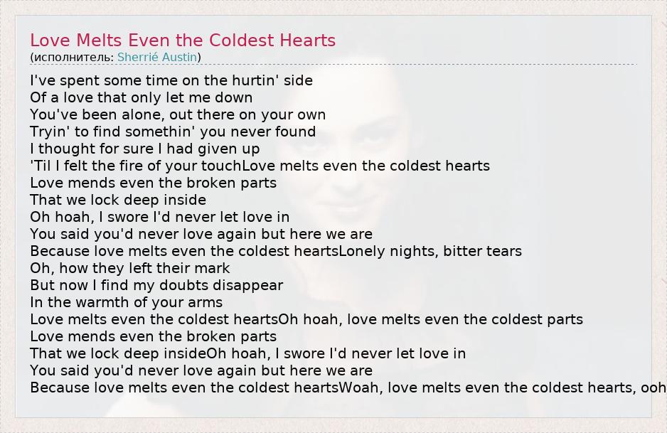 ГлавнаяИсполнителиSherrié AustinLove Melts Even the Coldest Hearts