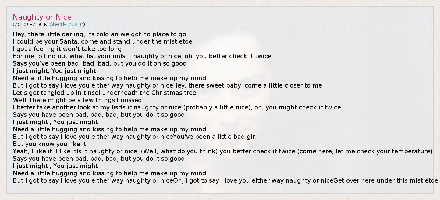 А как ты думаешь, о чем песня "Naughty or Nice" ?