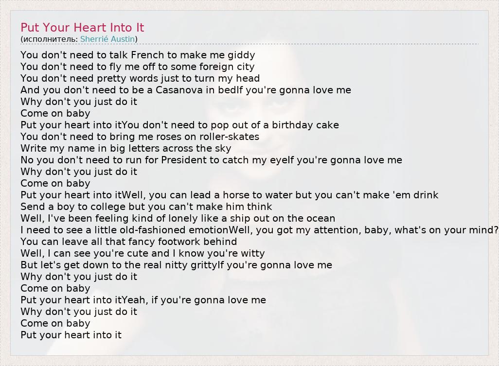 А как ты думаешь, о чем песня "Put Your Heart Into It" ?