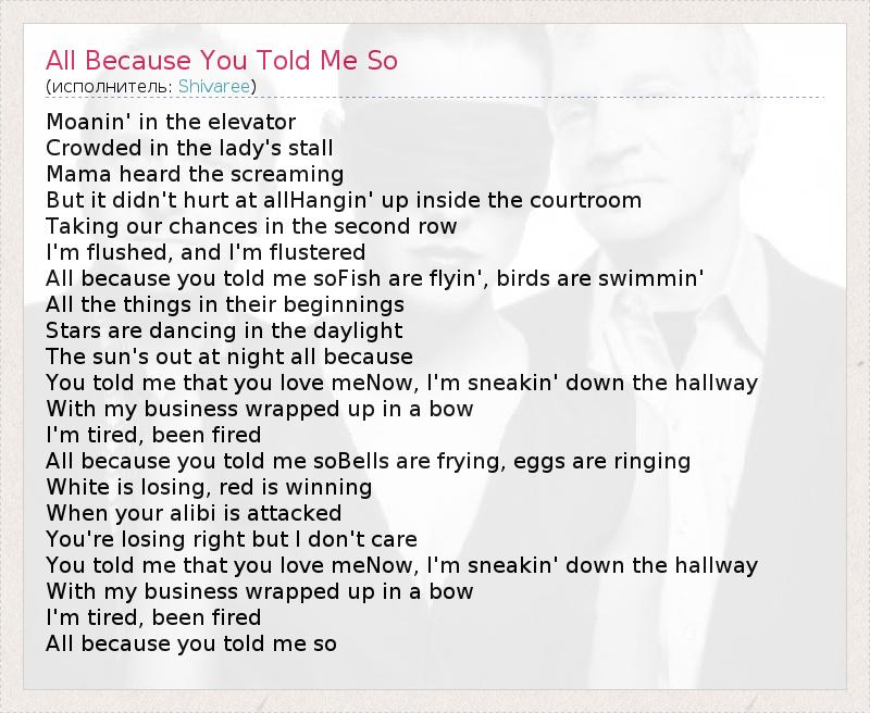 А как ты думаешь, о чем песня "All Because You Told Me So" ?