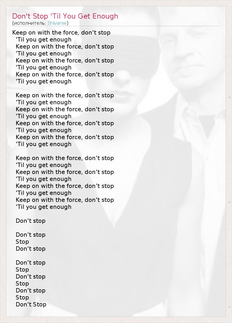 А как ты думаешь, о чем песня "Don't Stop 'Til You Get Enough" ?