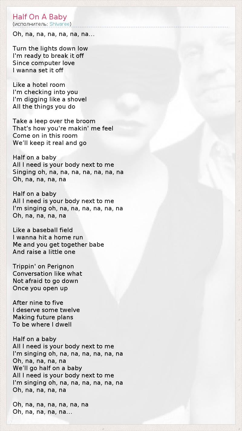 А как ты думаешь, о чем песня "Half On A Baby" ?