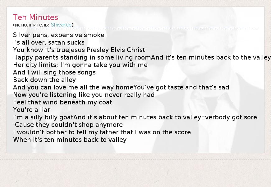 А как ты думаешь, о чем песня "Ten Minutes" ?