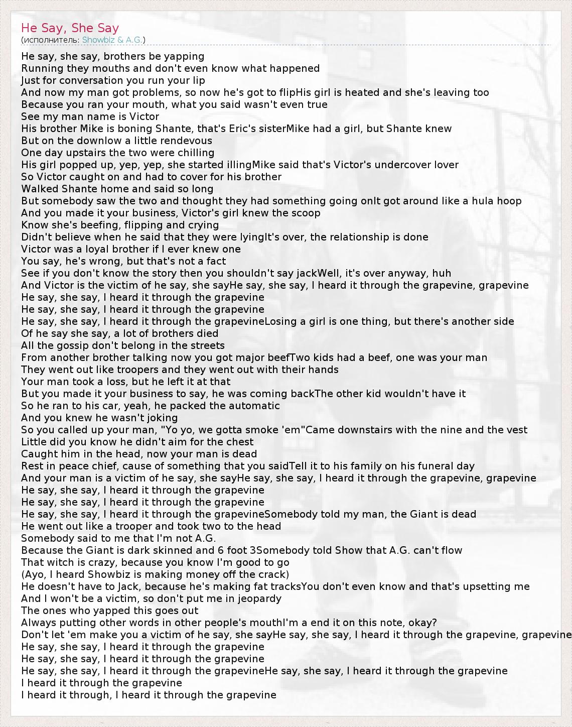 He say, she say, I heard it through the grapevineHe say, she say, I heard it through the grapevine