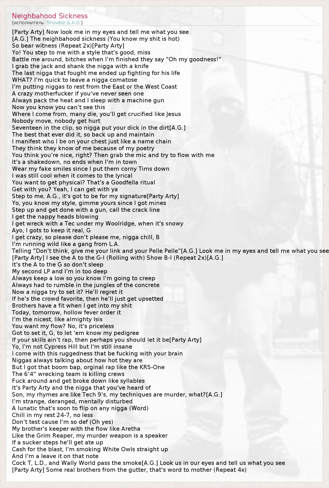 А как ты думаешь, о чем песня "Neighbahood Sickness" ?