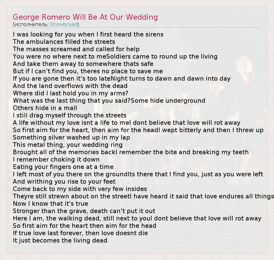 А как ты думаешь, о чем песня "George Romero Will Be At Our Wedding" ?