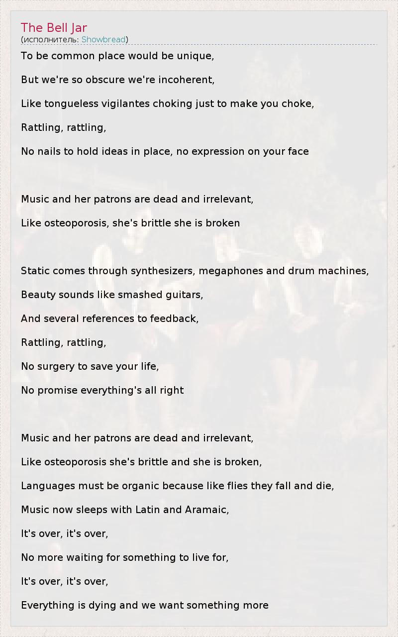 А как ты думаешь, о чем песня "The Bell Jar" ?