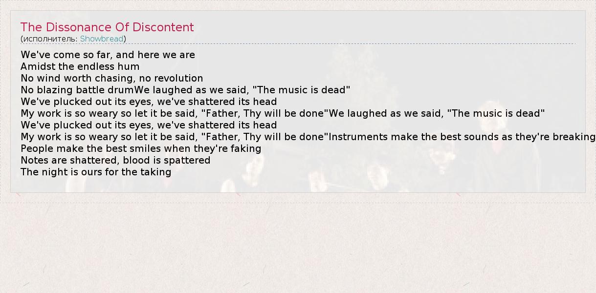А как ты думаешь, о чем песня "The Dissonance Of Discontent" ?