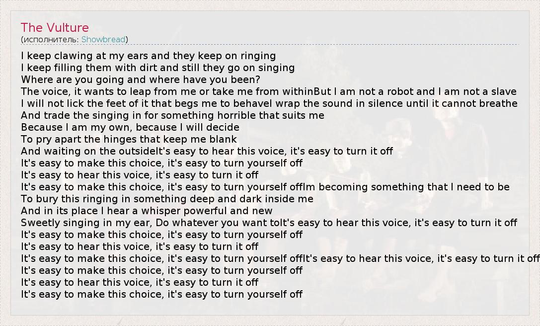 It's easy to make this choice, it's easy to turn yourself offIt's easy to hear this voice, it's easy to turn it off