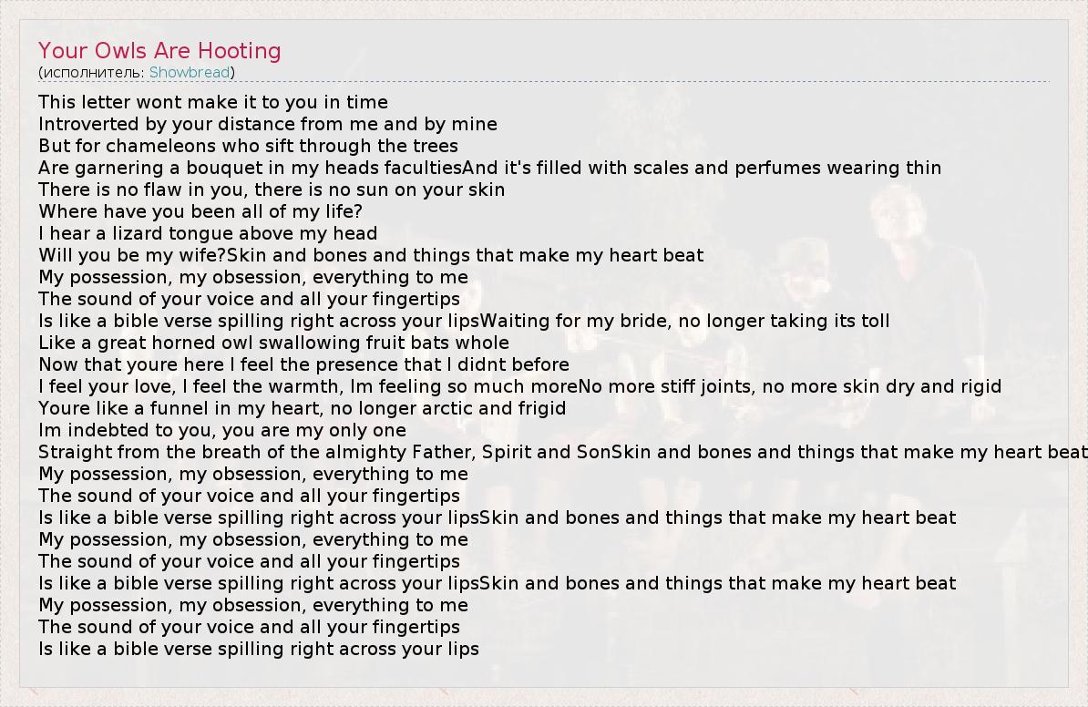 ГлавнаяИсполнителиShowbreadYour Owls Are Hooting
