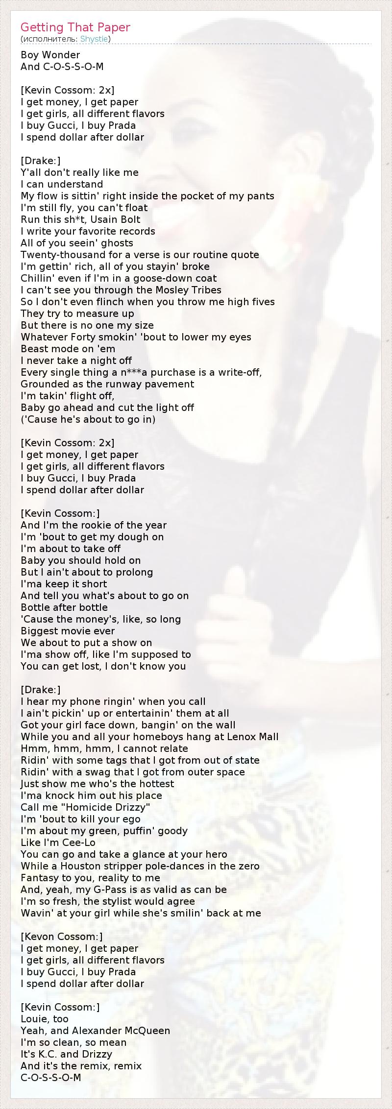 А как ты думаешь, о чем песня "Getting That Paper" ?