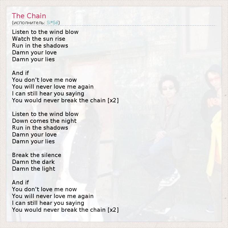 А как ты думаешь, о чем песня "The Chain" ?