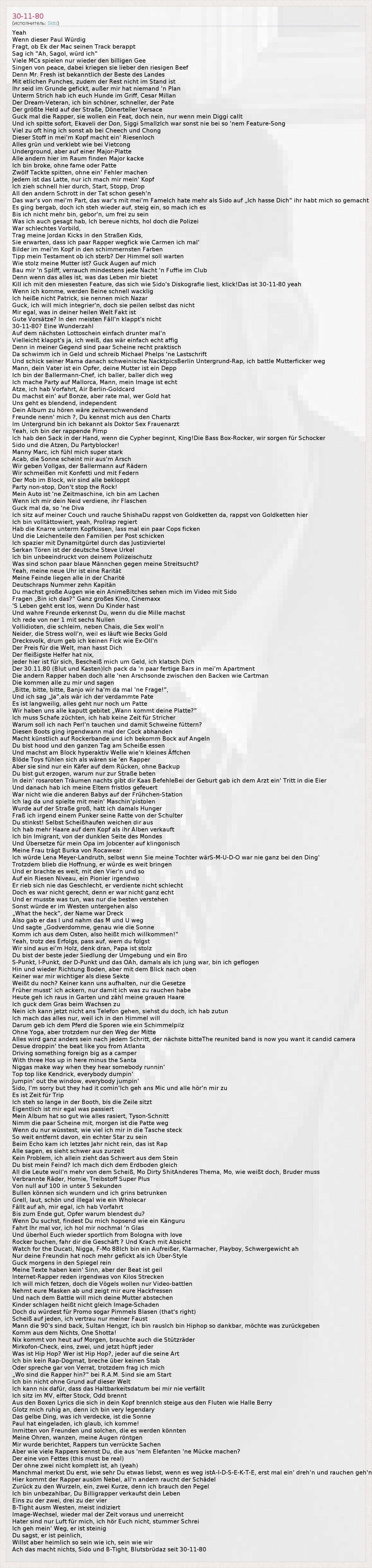 Kill ich mit den miesesten Feature, das sich wie Sido's Diskografie liest, klick!Das ist 30-11-80 yeah