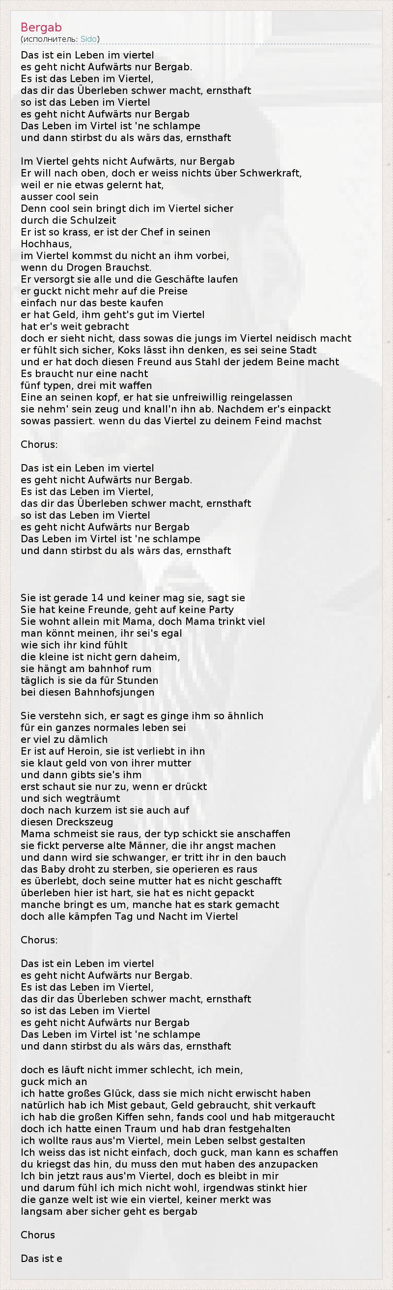 Im Viertel gehts Nicht Aufwärts Нур Bergab