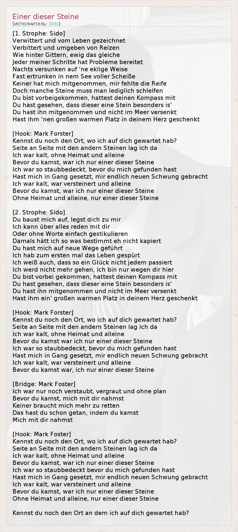ГлавнаяИсполнителиSidoEiner dieser Steine