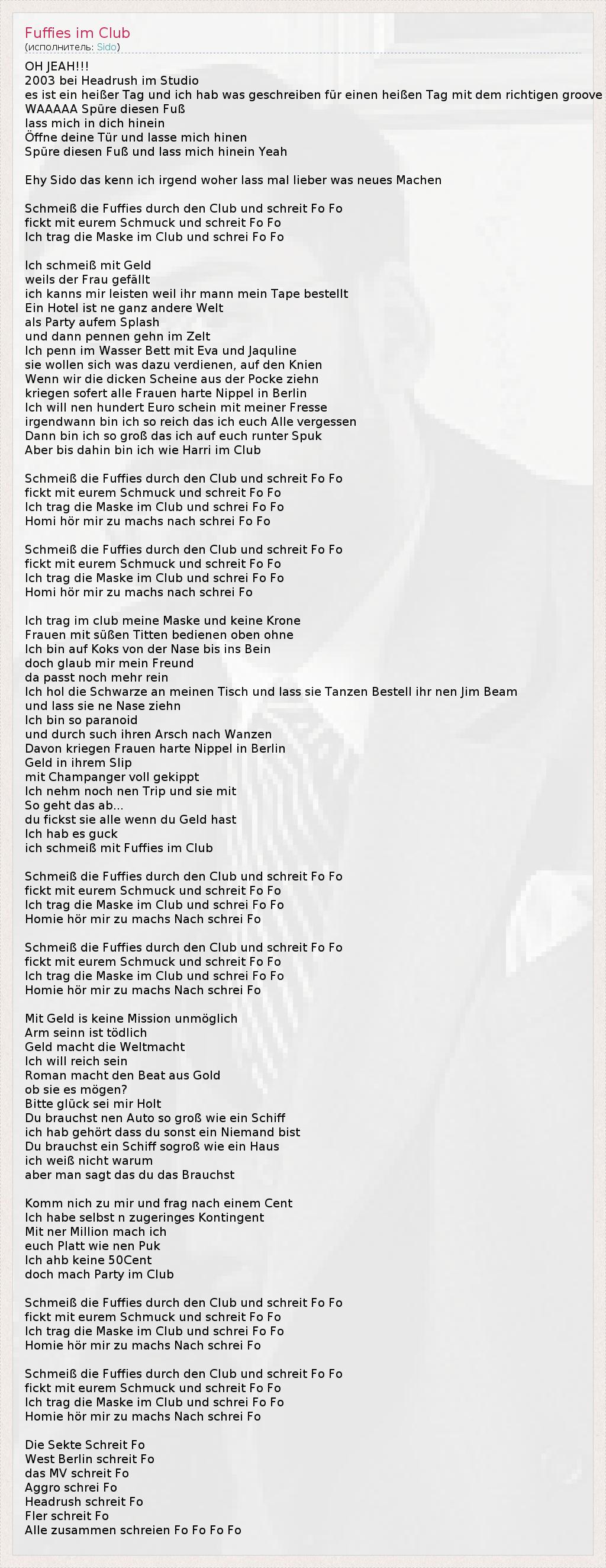 А как ты думаешь, о чем песня "Fuffies im Club" ?