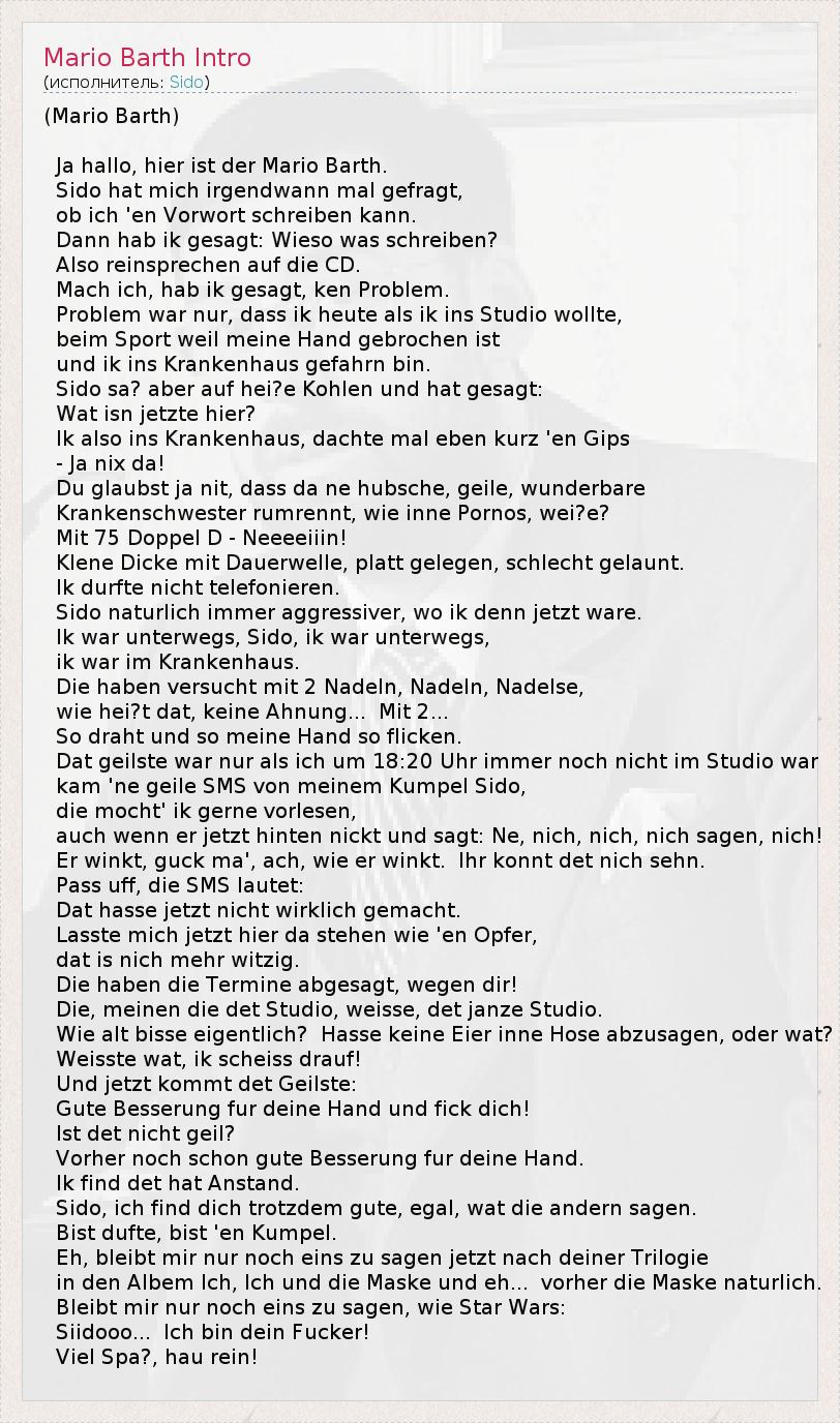 А как ты думаешь, о чем песня "Mario Barth Intro" ?