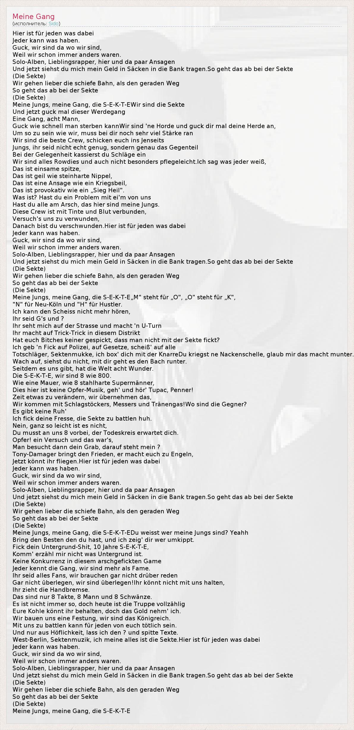 А как ты думаешь, о чем песня "Meine Gang" ?