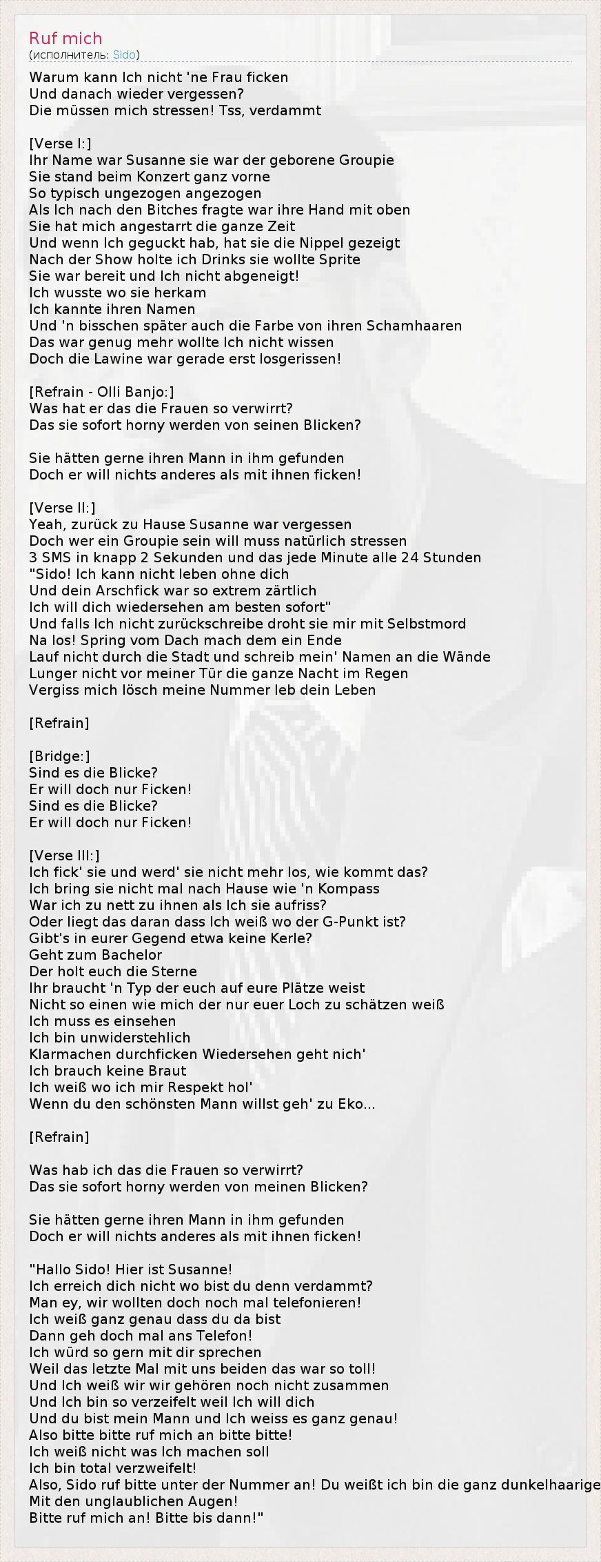 А как ты думаешь, о чем песня "Ruf mich" ?